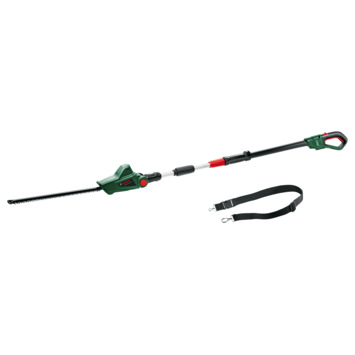 De Bosch accu telescopische heggenschaar UniversalHedgePole 18 is ideaal voor het onderhoud van hoge heggen. Met een verstelbare telescoopstang van 2,1 tot 2,6 meter hoog, snoeit deze machine krachtig en moeiteloos zelfs de hoogste takken. Door de 18V / 2,5Ah Li-Ion accu kunt u gelijk aan de slag zonder het gebruik van verlengsnoeren. Met het zwaard van 43 centimer lang, snoei je takken met een dikte tot 16 millimeter. Extra handig is de kop, deze is 135 graden draaibaar, waardoor je kan snoeien onder diverse hoeken. Met de UniversalHedgePole 18 wordt hoog snoeien wel heel eenvoudig. De Bosch accu telescopische heggenschaar UniversalHedgePole 18 wordt geleverd zonder accu.