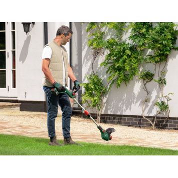 Houd jouw kleine tot middelgrote tuin in topvorm met de handige UniversalGrassCut 18V-26-500 trimmer! Met zijn ergonomische ontwerp en flexibele functies kun je deze accutrimmer op een natuurlijke manier manoeuvreren, waardoor je langdurig plezierig kunt werken. De telescoopsteel kan eenvoudig worden aangepast door aan de klem te draaien. Activeer de kantensnijfunctie met een simpele tik en draai van de bovenste handgreep. Bij het trimmen van gras of onkruid in krappe ruimtes, zoals onder bankjes, heggen en andere lastige plekken, kan de trimmerkop worden gekanteld voor meer wendbaarheid en precisie. Dankzij de POWER FOR ALL 18V 2,5 Ah-batterij kan deze indrukwekkende trimmer de kanten van maar liefst zes tennisbanen aan! Ideaal voor het strak trimmen van kanten, het bijhouden van kleine tot middelgrote gazons en het aanpakken van onkruid. Het beste van alles is dat deze trimmer deel uitmaakt van het 18V POWER FOR ALL-systeem, waardoor je één accu kunt gebruiken voor alle 18V POWER FOR ALL-gereedschappen. Zo bespaar je tijd en moeite tijdens jouw volgende klus!