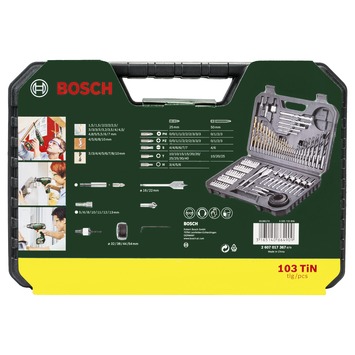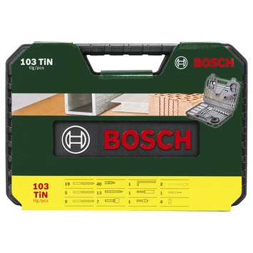 De Bosch V-Line Titanium boor- en bitset (103-delig) is een veelzijdige en praktische set voor alle klussen die je tegenkomt. Dankzij de titanium-nitride coating op de boren en bits, geniet je van een langere levensduur en superieure prestaties, zelfs bij intensief gebruik. De set bevat een breed scala aan hout- en metaalboren, samen met schroefbits, zodat je altijd het juiste gereedschap bij de hand hebt. De set wordt geleverd in een handige opbergdoos, zodat je alles georganiseerd kunt bewaren en snel kunt vinden.