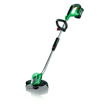De Bosch accu grastrimmer AdvancedGrassCut 36 is uitgerust met een tweedraads-snijsysteem, hierdoor snijdt de trimmer efficiënt en zorgt voor een beter resultaat. Je wisselt met één knop tussen de trimfunctie en kantsnijfunctie. Daarnaast is de trimmer uitgerust met een plantenbeschermer. De Bosch accu grastrimmer AdvancedGrassCut 36 heeft een maaibreedte van 30 cm.