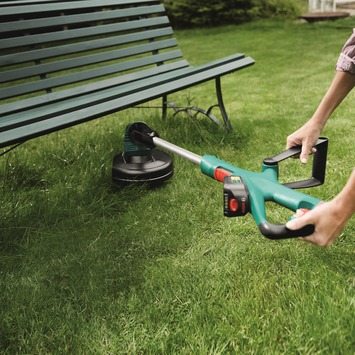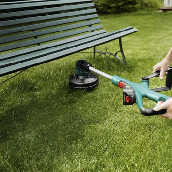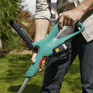 De Bosch accu grastrimmer ART 23-18 Li is een veelzijdige 18 Volt 2,5 Ah accutrimmer. De lengte van de steel is in te stellen tussen de 80 en 115 centimeter en heeft een maaibreedte van 23 cm. Doordat de trimmer op een accu werkt heb je geen last van snoeren. Daarnaast kan het handvat versteld worden en de kop in een hoek van 90 graden worden gezet voor een comfortabel gebruik. Hierdoor is de machine ook langdurig prettig te gebruiken. Dankzij de nylon mesjes kan je ononderbroken trimmen.