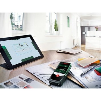 Voor de afstandsmeter is een speciale app ontwikkeld: de Bosch app PLR measure&go. In deze app kan je eenvoudig de meetresultaten vastleggen en bewaren. De laatste 10 meetresultaten worden automatisch opgeslagen.