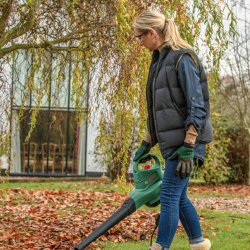 De UniversalGardenTidy 2300 is de 3-in-1 oplossing voor efficiënt opruimen van tuinafval. Minder lawaai met 75% door het produceren van een lager geluidsniveau van 99 dB. Blazen, opzuigen, hakselen van bladeren – het wisselen tussen de gebruiksmodi is snel en gemakkelijk. Vochtafstotende vuildeflectors op de opvangzak zorgen ervoor de water en vuil naar de grond worden geleid. Een metalen ventilator zorgt voor optimale prestaties voor een langere gebruiksduur, en de grotere spiraal maakt het verhelpen van blokkades gemakkelijk. Geniet van flexibel en efficiënt opruimen van de tuin met volledig variabel toerental in zowel blaas- als zuigmodus.