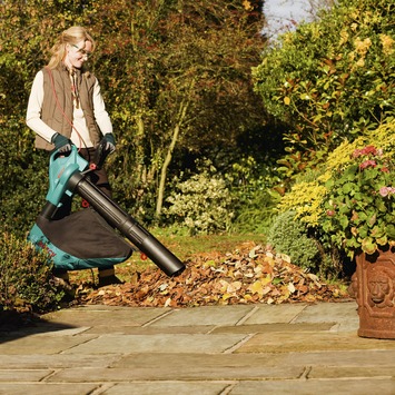 - Krachtige elektrische bladblazer voor het wegblazen, opzuigen en versnipperen van bladeren