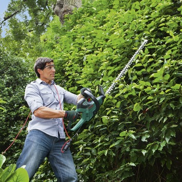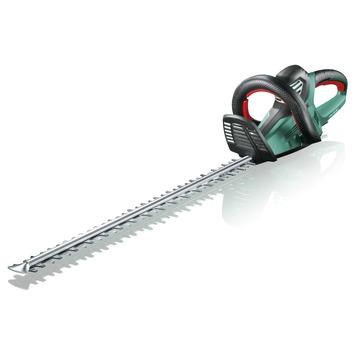 De Bosch elektrische heggenschaar AHS 70-34 is een ontzettend fijne heggenschaar om mee te werken. De heggenschaar heeft op alle handgrepen een softgrip. Het is 15% lichter dan de vorige uitvoering. Ondanks zijn lichte gewicht heeft de heggenschaar veel kracht. Het heeft namelijk een maximaal vermogen van 700 W. Het Bosch apparaat is zo klantvriendelijk om mee te werken dat het een ARG-certificaat heeft voor rugvriendelijkheid. De messen zijn van goed materiaal. Ze zijn lasergesneden en diamand geslepen. Ze kunnen takken doorsnijden met een maximale dikte van 34 mm en bladeren met een grootte van 700 mm. De heggenschaar heeft een zwaardlengte van 70 cm en een mes-afstand van 34 mm. Kortom, om al jouw heggen nauwkeurig te snoeien gebruik je de Bosch elektrische heggenschaar AHS 70-34.