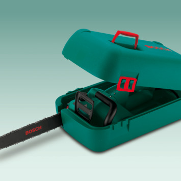 De elektrische kettingzaag is in bezit van een automatische oliesmering met een kijkglascontrole. De kettingzaag wordt geleverd in de bijbehorende koffer.