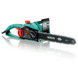 De Bosch elektrische kettingzaag AKE 40 S is door het fijne, lichte gewicht en de softgrip voor iedereen te gebruiken. Ook gaat het spannen van de ketting zonder problemen. De zaag is namelijk voorzien van een SDS-systeem wat ervoor zorgt dat je de wisseling kan uitvoeren zonder gereedschap. Met een draai aan de draaiknop is dat klusje geregeld. De ketting blijft door het oliereservoir van 200 ml soepel lopen. De zaag is ondanks zijn lichte gewicht heel krachtig. Door het zaagblad van 40 cm en het vermogen van 1800 watt kunnen bijvoorbeeld bomen met een dikke stam zonder problemen doormidden worden gezaagd. De tanden van staal zijn erg scherp en zagen moeiteloos door hout heen. De Bosch kettingzaag is zeer veilig te hanteren. Het is namelijk in bezit van een Quickstop terugslagrem. Dat houdt in dat als de kettingzaag terugschiet bij het raken van een boomstam de ketting stopt met werken. Kortom, voor de doe-het-zelf-klussers die graag lekker in de tuin bezig zijn is de Bosch Elektrische kettingzaag AKE 40 S ideaal voor jou.