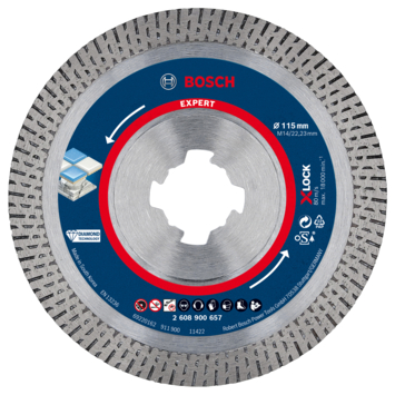 Tot 3x nauwkeuriger dan een standaard keramische diamantschijf De tegels die in de moderne bouw worden gebruikt, zijn vaak groot, erg hard en duur. Ze altijd op hoog niveau doorslijpen is daarom cruciaal, maar moeilijk. De Expert HardCeramic doorslijpschijf voor tegels is voorzien van Diamond Technology en een reeks ontwerpkenmerken om consistent de beste resultaten te leveren, zelfs in de hardste keramiek. Dankzij de Bosch Diamond Technology, die nieuwe diamanten naar de oppervlakte brengt om ervoor te zorgen dat de rand altijd scherp is, slijpt onze keramische doorslijpschijf zelfs soepel door harde tegels. Het dunne, sterke lichaam en de doorlopende gegroefde rand bieden maximale controle en houden de trillingen laag voor een hoogwaardige, splintervrije zaagsnede. De Bosch Expert HardCeramic X-LOCK diamantdoorslijpschijf voor tegels biedt de beste zaagsnede in harde tegels. Met deze diamantdoorslijpschijf kun je er zeker van zijn dat je bij elke klus een professionele afwerking krijgt. Klik het vast met X-LOCK: het snelste wisselsysteem voor accessoires op de markt. Past ook op haakse slijpers met moer en schroefdraad.