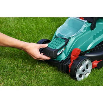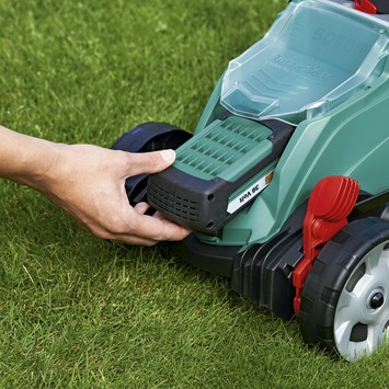 De Bosch grasmaaier accu rotak 32 LI is de perfecte grasmaaier voor in kleinere tuinen. De grasmaaier is prettig te gebruiken. Dankzij het Ergoflex systeem is de grasmaaier gemakkelijk te besturen en houd je een natuurlijkere houding aan. Verder heeft de grasmaaier een licht gewicht en kan daardoor gemakkelijk worden verplaatst. De graskammen zorgen dat je zonder gedoe makkelijk de rand van je gazon meepakt. Dankzij de 2.0Ah accu heb je tijdens het maaien geen last van snoeren en kan je overal heen. De accu heeft een voltage van 36 Volt en bestaat uit Lithium-Ion. Je krijgt geen last van zelfontlading of geheugenverlies. Als de accu op is, is die in ongeveer 60 minuten helemaal opgeladen. De maaier heeft scherpe stalen messen die een maaibreedte hebben van 32 cm. De messen zijn met een hendel makkelijk in diverse hoogtes in te stellen. Het gemaaide gras wordt opgevangen in de opvangzak van 31 liter. Je hoeft na afloop niet meer te harken en door de ruime inhoud heb je geen onderbrekingen. Doormiddel van de inklapbare grepen kan je de grasmaaier compact opbergen. De maaier heeft een automatische veiligheidsuitschakeling. Om te zorgen dat jouw gras altijd groener en mooier is dan bij de buren gebruik je de Bosch grasmaaier accu rotak 32 LI.