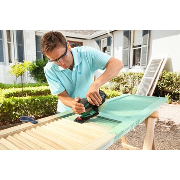 Eén accu voor alle doe-het-zelf- en tuingereedschappen in het 18 Volt Power for ALL Lithium-Ion accusysteem. Een verder pluspunt van de PSM 18 LI is de integratie van het Bosch microfiltersysteem. De accumultischuurmachine is uitgerust met een stofzuigelement dat het stof direct in de meegeleverde microfilterbox afzuigt. Dit vermindert het vrijkomende stof bij schuurwerkzaamheden tot een minimum.