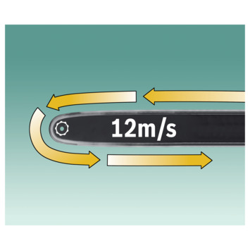De Bosch kettingzaag AKE35-19S is een sterke kettingzaag met een hoge kettingsnelheid van 12 meter per seconde waarmee je zonder enige moeite door hout heen zaagt. De heeft de motor een krachtig vermogen van 1900 Watt. De Chrome-Extra-Long-Life-ketting maakt het mogelijk dat die lang scherp blijft. De stalen tanden op de ketting zorgen voor een stevigheid en geven meer stabiliteit.