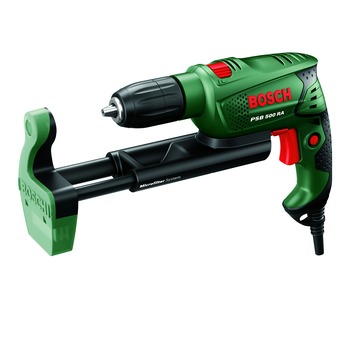 De Bosch klopboormachine PSB 500 RA is geschikt voor alle gangbare schroef-, boor- en klopboorwerkzaamheden. Met een vermogen van 500 watt, maximaal aantal toeren van 3000 per minuut en maximum slagen van 33000 per minuut worden boorgaten tot een diameter van tien millimeter in beton, 25 millimeter in hout en acht millimeter in staal eenvoudig geboord. De Constant-Electronic toerentalregeling is via een drukschakelaar te doseren, waardoor je de machine altijd goed onder controle houdt. In de tweehulzige snelspanboorhouder met Bosch Auto Lock kunnen boren of bits snel worden bevestigd. Het geïntegreerde stofafzuiging (Bosch microfiltersysteem) zorgt dat het stof direct bij het boorgat wordt weggezogen, waardoor je een schonere werkomgeving behoudt. De Bosch klopboormachine PSB 500 RA wordt geleverd inclusief kunststof koffer.