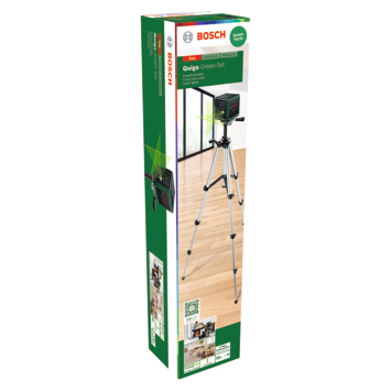 De Quigo Green is milieuvriendelijk, met gerecycled materiaal in het product en de verpakking, en een geoptimaliseerd stroomverbruik. Eenvoudig te positioneren met de meegeleverde adapterplaat en universele klem MM 2, is deze laser perfect voor het ophangen van foto's, tegelwerk, het monteren van gordijnstangen en het installeren van keukenmeubels. De set bevat ook een 1,1 m aluminium statief en 2 batterijen (1,5 V LR03). Maak je project gemakkelijker en nauwkeuriger met de Quigo Green!