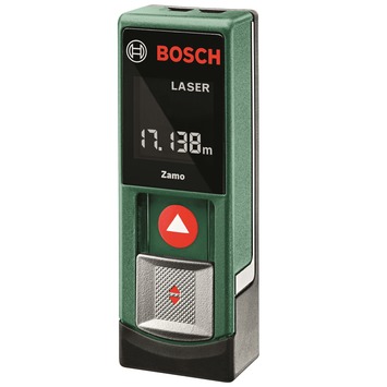 De Bosch laser afstandsmeter Zamo is een handzame laser afstandsmeter met een meetbereik van 15 cm tot maximaal 20 meter. De nauwkeurigheid bij het meten is ±3 mm. Hierdoor is deze laser afstandsmeter van Bosch zeer geschikt voor bijvoorbeeld het opmeten van ruimtes en voor het ophangen van schilderijen. Daarnaast is de afstandsmeter erg handig bij het bepalen van de plek van een hanglamp exact boven een tafel. Door de eenknopsbediening is de Bosch Zamo laser afstandsmeter ook nog eens eenvoudig te bedienen. De bijbehorende batterijen (2x AAA) zijn meegeleverd, je kunt dus direct aan de slag.