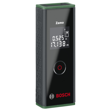 Met de Bosch Zamo kun je met één druk op de knop afstanden meten. Door de simpele werking kan iedereen hier mee werken. Het apparaat is tot 20 meter nauwkeurig. De door Bosch ontwikkelde technologie zorgt voor exacte meetresultaten met een precisie van ±3 mm dankzij lasertechnologie. Met zijn praktische afmetingen en het geringe gewicht van slechts 80 g past het praktische toestel in elke broekzak.