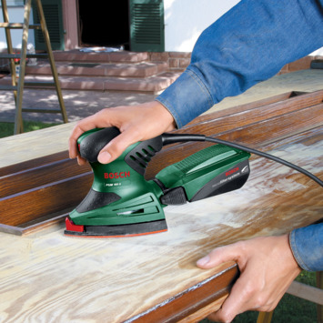 De Bosch multischuurmachine PSM 160 A incl 25 schuurvellen is een krachtige schuurmachine. Je haalt met dit apparaat gemakkelijk verf en lak weg, maar je kan er ook deuren en ramen mee schuren. De schuurmachine is ideaal om te gebruiken voor het bewerken van hout. De schuurmachine heeft een krachtige motor van 160 watt en een softgrip waardoor die fijn is om mee te werken. Het meegeleverde schuurpapier wordt gemakkelijk verwisseld door de klittenbandbevestiging. Dankzij de stofafzuiging kan je schoon en stofvrij werken. De handige aan/uit schakelaar hoeft niet constant worden ingedrukt waardoor je de machine langer kan gebruiken. Kortom, de Bosch multischuurmachine PSM 160 A incl 25 schuurvellen is de perfecte schuurmachine voor de klusser.