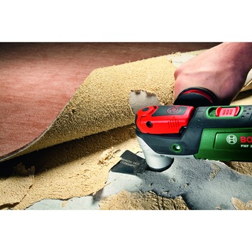 De Bosch PMF 250 CES Multitool is een krachtige allround multitool, waarmee u hout, kunsstof, pleister, metaal en zachte muurtegels kunt doorslijpen,