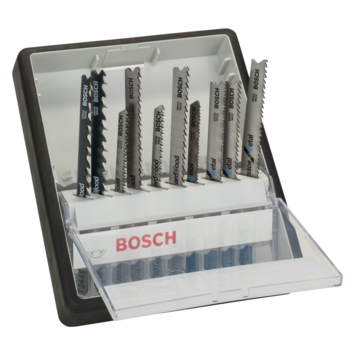 10-delige Robust Line decoupeerzaagbladenset Wood and Metal met als inhoud: T 244 D; T 144 D; T 101 AO; T 101 B; T 101 AOF; T 101 BF; T 118 EOF; T 118 AF; T 118 BF; T 123 X