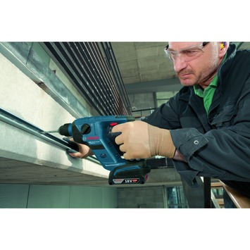 De Bosch Professional accuboorhamer GBH 18 volt lithium-ion compact is, zoals de naam het al zegt, compact en krachtig. De boorhamers van Bosch zijn ontwikkeld voor uiteenlopende boortoepassingen in bijvoorbeeld beton. Deze boorhamer heeft een compacte constructie voor optimale bediening. Dankzij de speciale greep houdt u tijdens het werken met de boorhamer een goede grip. De boorhamer is betrouwbaar en robuust en kent een lange levensduur. Niet voor niets biedt de Bosch Professional accuboorhamer GBH 18 volt lithium-ion compact onbegrensde bewegingsvrijheid. Dankzij geoptimaliseerd slagmechanisme garandeert hij een snel resultaat, ook bij het hameren in het hardste beton.