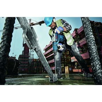 De Bosch Professional boorhamer GBH 8-45 D SDS-max boort zonder problemen in hard gesteente. Maar niet alleen hard gesteente gaat het moeiteloos. Ook op materialen zoals metaal en staal zijn geen punt. De machine heeft meerdere functies naast boren waaronder beitelen, hameren en kloppen. De boor haalt zijn energie uit netspanning en heeft een krachtig vermogen van 1500 W. Doormiddel van de Turbo Power krijg je extra vermogen bij het beitelen. Het heeft dan ook een boorcapaciteit van 45mm. Met de overbelastingskoppeling wordt het apparaat beschermd en krijgt ook door de metalen constructie een langere levensduur. Door de sds-max boorkop blijven boren goed zitten terwijl je bezig met het boren in zware ondergronden.