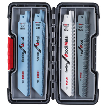 De Bosch repricozaagbladen set bestaat uit 20 bladen. Er zitten bladen voor hout en metaal in de set.