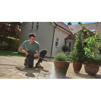 Dankzij het 3-in-1 sproeisysteem schakel je eenvoudig tussen een krachtige hogedrukstraal, een roterende vuilfrees en een zachte zeepstraal. Zo heb je altijd de juiste instelling voor elke klus, zonder ingewikkelde montage of sproeierwissel. De Home & Car Kit bevat bovendien handige accessoires zoals een terrasreiniger en autospuitmond, zodat je meteen aan de slag kunt.