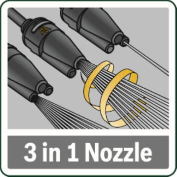 - 3-in-1 sproeikop: Wissel snel tussen straal, frees en zeep