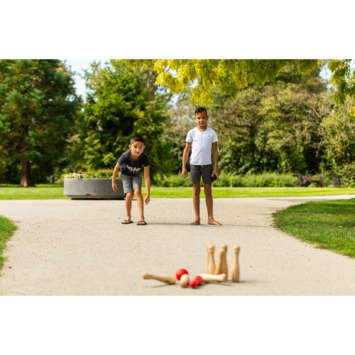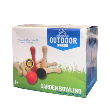 Outdoor Play Garden Bowling set. Strike! Gooi zoveel mogelijk kegels om in twee beurten. De hoogste score wint. De set bestaat uit 9 kegels en 2 ballen. Wordt inclusief uitgebreide spelregels geleverd in full-colour doos met uitgebreide handleiding. Geschikt voor kinderen vanaf 3 jaar.