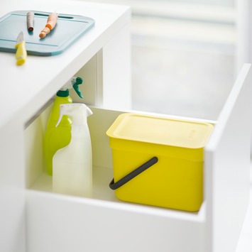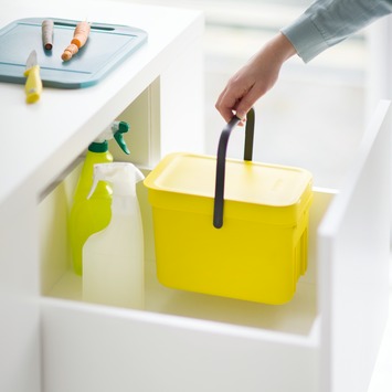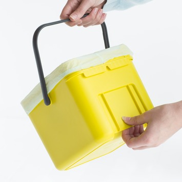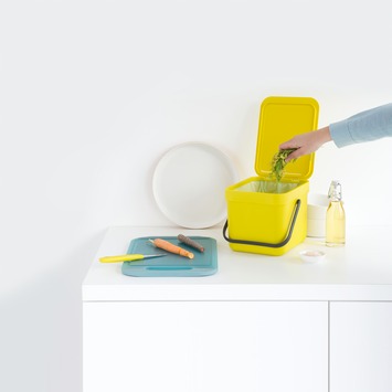Het 6 liter-afvalemmertje met stay-open deksel is ideaal voor op het aanrecht, in de keukenla of aan de wand. Je groenteafval kan er direct in. Het afvalemmertje kan aan de wand bevestigd worden of los op de vloer staan en wordt geleverd inclusief wandhouder. Bijpassende 100% composteerbare afvalzakken zijn verkrijgbaar.