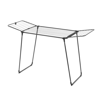 Met het Brabantia HangOn Too droogrek bespaar je ruimte en energie. Het biedt 18 meter drooglijn, genoeg voor meer dan één wasmachine aan was. Dankzij de extra brede lijnen van maximaal 92 cm hangen grote stukken zoals handdoeken makkelijk en drogen ze sneller. De ruime tussenafstand van de lijnen zorgt dat je wasgoed niet in de war raakt. Het rek beschikt over een geïntegreerde houder voor maximaal 20 kleine items, zoals sokken en ondergoed, die je zonder knijpers droogt. Na gebruik klap je het rek compact in. De transportvergrendeling houdt het droogrek stevig dicht en fungeert ook als haak voor hangers. Met stevige beschermdopjes blijft het rek op zijn plek en ontstaan er geen krassen. Het rek bestaat voor 36% uit gerecycled materiaal en is 96% recyclebaar na einde gebruik.