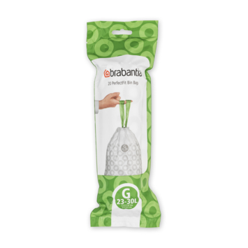 Voor elke bak een passende zak met Brabantia Perfect Fit Afvalzakken - 23/30 liter - Code G - 20 stuks. Brabantia afvalzakken zijn precies afgestemd op Brabantia pedaalemmers, prullenbakken, afvalemmers, Touch bins etc. Voor elk model is er een perfect passende afvalzak. Door de handige trekbandsluiting is de volle zak makkelijk te verwijderen en dicht te knopen.