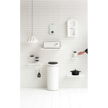 Met de Brabantia Touch Bin prullenbak heb je een stijlvol product om je afval te verzamelen. Met een inhoud van 30 liter is deze prullenbak uitermate geschikt voor je dagelijks afval. De Touch Bin prullenbak is een must voor elke keuken, maar ook in hobbyruimte of kantoor misstaat die niet. Door de 'Soft-Touch' sluiting opent en sluit het deksel geruisloos.