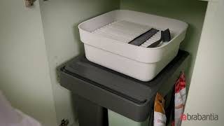 De Brabantia Sort & Go Inbouwemmer 10+10+20 liter biedt een oplossing om je afvalscheiding te verdriedubbelen zonder dat het ten koste gaat van vloerruimte. Gemaakt voor in de kast, met een makkelijk te monteren frame dat zelfdragend is, waardoor je geen last hebt van doorhangende deuren! Dit discrete trio past moeiteloos in de meeste keukenkastjes, ongeacht of het deurtje naar links of naar rechts opengaat.