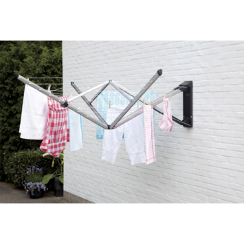 De Brabantia WallFix wanddroger helpt je was snel en overzichtelijk drogen en klap je na gebruik makkelijk tegen de muur. Met 24 meter drooglijn is er ruimte voor twee wasmachines aan was, ook voor grote stukken dankzij de buitenste lijnen van 120 cm. De UV-bestendige lijnen met antislipprofiel houden je was stevig op zijn plek. Met de meegeleverde boorsjabloon en sterk bevestigingsmateriaal hang je het droogrek eenvoudig op. Omdat je hem op jouw ideale werkhoogte bevestigt, hang je je was comfortabel op zonder te bukken. Na gebruik bescherm je de droger met de weerbestendige hoes. Het strak gelakte metallic grey frame geeft hem een stijlvolle uitstraling.