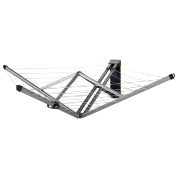 Een ideaal rek voor aan de muur. Niks in de grond, mooi weggewerkt als je hem inklapt. Er kan best veel was op (huishouden van 2 personen). Heel blij mee.