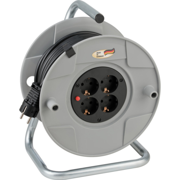 BAT® kabelhaspel Haspel uit breukvast kunststof op roestvrij gegalvaniseerd draagbaar frame. Ergonomisch handvat. 4 geaarde stopcontacten Overhittingsbeveiliging, controle-licht bij overhitting en overbelasting.