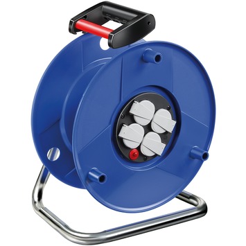 Brennenstuhl kabelhaspel leeg 4-voudig. De haspel bestaat uit breukvast kunststof op een roestvrij gegalvaniseerd draagbaar frame. Het heeft een ergonomisch handvat met roede voor perfecte kabelcontrole bij het op-en afrollen. De haspel heeft 4 geaarde stopcontacten met zelfsluitende klapdeksels. Tot slot heeft het product een overhittingsbeveiliging, en een controle-licht bij overhitting en overbelasting.