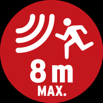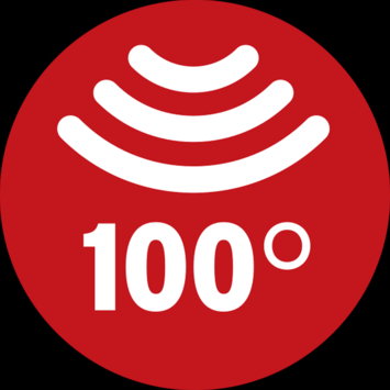 Detectiebereik van 8 meter, detectiehoek van ca. 100°.