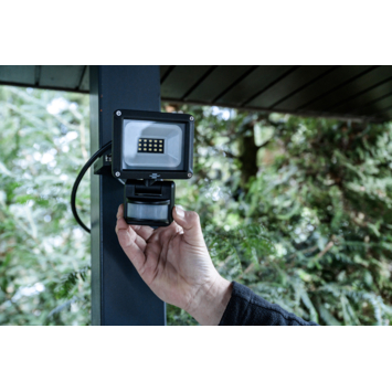 De JARO 1060 P LED is een zeer energiezuinige 10W LED-schijnwerper met bewegingsmelder. De bewegingsmelder heeft een detectiebereik tot 10 meter en een hoek van 180 graden. Daarnaast heeft het een instelbare gevoeligheid en inschakeltijd van 10 seconden tot 5 minuten. De ingebouwde Everlight SMD LED's hebben een lange levensduur en zorgen voor verlichting van grote oppervlakken. Het heeft een IP65-beschermingsgraad (stof- en straalbestendig) en een veiligheidsglas voor extra bescherming. Deze lamp is ideaal voor automatische verlichting van bijvoorbeeld opritten, carports en voor beveiligingsdoeleinden.