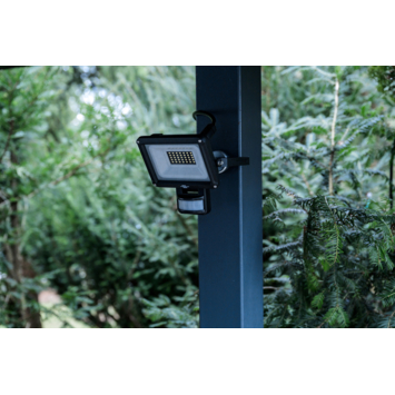 De JARO 3060 P LED wandlamp heeft 20W vermogen en heeft heldere Everlight SMD LED’S. De lamp is ideaal voor binnen- en buiten gebruik dankzij de IP65-beschermingsgraad (stof- en straalbestendig). Het heeft een bewegingssensor met een detectiebereik tot 10 meter en een hoek van 180 graden, met instelbare gevoeligheid en inschakeltijd van 10 seconden tot 5 minuten. De lamp heeft een solide zwarte aluminium behuizing en een veiligheidsglas voorscherm voor extra bescherming. De ingebouwde Everlight SMD LED's hebben een lange levensduur en zorgen voor verlichting van grote oppervlakken. Deze lamp is ideaal voor automatische verlichting van ingangen, opritten en carports, en dient ook als een afschrikmiddel tegen inbraak en diefstal.