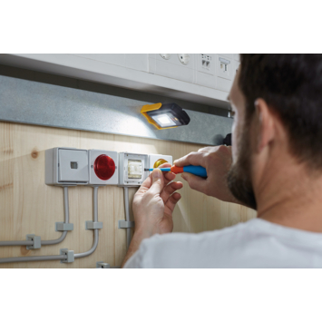 Compacte universele Brennenstuhl lamp 4 + 3 SMD LED's. Dit kleine model heeft een hoog lichtrendement in zakformaat en is flexibel in gebruik. De 4 LED's aan de voorzijde zorgen voor een brede lichtspreiding tot 200 lumen en hebben een gebruiksduur tot wel 6 uur. De extra schakelstand voor 3 LED's 20 lumen bovenop zorgt voor een andere dimensie bij het richten van de lamp. De plastic beugel met ingebouwde magneet is 360° zwenkbaar waardoor deze voor veel doeleinden inzetbaar is. Tevens kan de lamp worden opgehangen door de Inklapbare 360° draaibare haak. De aan/uit-schakelaar schakelt tussen de verschillende lichtstanden.De werktemperatuur is functioneel daglicht 6500 kelvin.