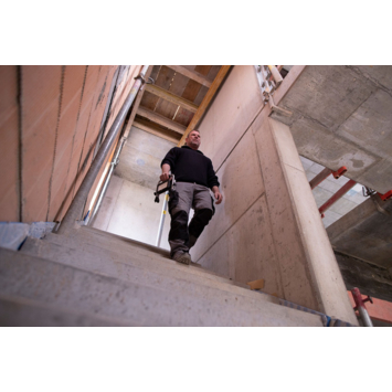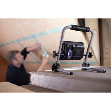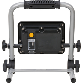 Uiterst compacte en lichte bouwlamp op batterijen met een vermogen van 20 W is dankzij de beschermingsklasse IP54 (stof- en spatwaterdicht) bij uitstek geschikt voor gebruik buitenshuis