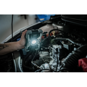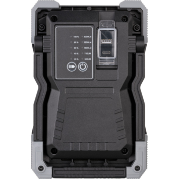 Helder, veelzijdig en onverwoestbaar. Altijd helder werklicht, ook op plaatsen zonder netstroom. Schakelaar met functies Licht: 100 % - 75 % - 50 % - 25 % - 10 %. USB-laadkabel type A / C. Powerbank-functie: USB-oplaadpoort 1 A voor apparaten met een USB-oplaadkabel, zoals smartphones, tablets, enz. Ingebouwde lithium-ion-accu 7,4 V/5 Ah met powerbank-functie en laadpeil-indicator. Behuizing van gegoten aluminium, randbescherming van hoogwaardige kunststof. Stoot- en valbestendig tot een hoogte van 3 m, IK08. Stabiel, trapsgewijs uitklapbaar frame. Met vormgegeven, robuuste tas voor een veilig transport. In kleurrijke display-doos.
