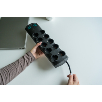 Komt u contactdozen tekort in huis of op kantoor? Installeer dan de 10-voudige stekkerdoos van Brennenstuhl. Hierop sluit u maar liefst 10 elektronische apparaten tegelijkertijd aan. Doordat de stopcontacten in een hoek van 45 graden zijn geplaatst, vallen de stekkers niet over naastliggende stopcontacten en kunt u de stekkerdoos ten volle benutten. De zwarte stekkerdoos heeft twee verlichte schakelaars en een snoer met een lengte van 2 meter. Met behulp van de schakelaars stopt of start u de stroomtoevoer. De 10-voudige stekkerdoos is gemaakt van sterk kunststof. Stijlvol en vormvast. Met de 10-voudige zwarte stekkerdoos sluit u bijvoorbeeld uw computer, printer en beeldscherm aan op één contactdoos.