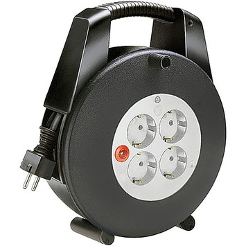 Brennenstuhl Vario-Line kabelhaspel. Mooi stabiele behuizing van speciaal kunststof. Ergonomisch handvat. Grote stabiliteit door stabiel dubbelvoet. 4 geaarde contactdozen.