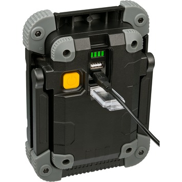 Altijd helder werklicht, ook op plaatsen zonder netstroom. Spatwaterbestendig. Inclusief batterijïndicator, en geïntegreerde ontladingsbeveiliging. Met aan/uit-schakelaar. 2 Schakelniveaus : 100 % en 50 % licht (voor langere duurzaamheid van de verlichting).