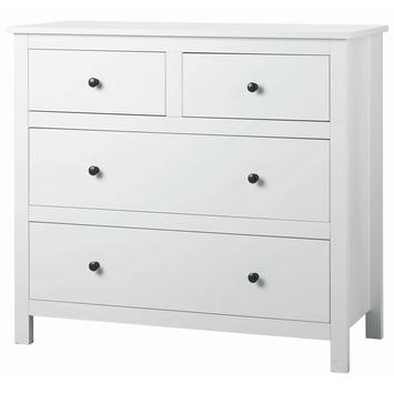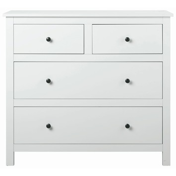 Deze handige ladekast Brest uit de serie Bretagne met 4 laden is zeer geschikt in de slaapkamer als opbergkast voor ondergoed en sokken, in de hal voor handschoenen en sjaals en/of in de woonkamer. De buitenafmetingen zijn (hxbxd) 81x90x39 cm. De binnenmaten van de 2 bovenste laden zijn diepte 29 cm, breedte 32,5 cm en de hoogte is 11 cm. De 2 brede laden hebben de binnenmaten (bxdxh) 74x29x11 cm Het bovenste 2 ladefronten hebben de afmeting (hxb) 15,5x37 cm en de 2 onderste ladefronten (hxb) 19,8x78,8 cm. De ladekast Brest is gemaakt van FSC gecertificeerd MDF. De ladegeleiders zijn van metaal, waardoor de lade soepel open en dicht gaat en de lade is ook makkelijk uitneembaar. De handgrepen zijn van solide metaal. De ladekast is afgelakt in de kleur wit RAL nummer 9003.