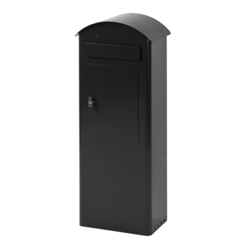 Stalen staande brievenbus van hoogwaardige kwaliteit met een inworpopening aan beide zijden. De klep klapt naar binnen bij het inwerpen van de post. Eenvoudig afsluitbaar en brandveilig. De inhoud van de brievenbus is verstelbaar van 35 tot 70 liter. Inworpopening: 26,5 x 5 cm.
