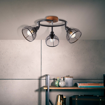 Brilliant opbouwspot Avia 3x E14 zwart/hout69.74