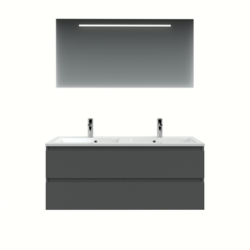 De Bruynzeel badkamermeubel Cadiza is een modern en tijdloos vormgegeven meubel. De kasten zijn gemaakt van MDF en rondom voorzien van een stootvaste ABS kantafwerking. Badkamermeubel Cadiza is verkrijgbaar in de kleuren mat wit, grafiet of Bardolino houtdecor. De strak vormgegeven wasbakken van composiet zijn voorzien van een glanzende toplaag. Badkamermeubel Cadiza is verkrijgbaar in de maten 80, 100 en 120 cm. De 120 cm variant is voorzien van een dubbele wasbak. De wastafelmeubels bestaan uit een wasbak en een onderkast met dubbele greeploze laden die zijn uitgevoerd met een luxe soft-close ladesysteem. De laden zijn volledig uittrekbaar voor optimale benutting van de beschikbare opbergruimte. De bijpassende spiegels zijn uitgevoerd met geïntegreerde LED-verlichting en lichtschakelaar. Optioneel kan het Cadiza badmeubel worden uitgebreid met een kolomkast. De wastafelkasten en kolomkasten zijn voorgemonteerd en eenvoudig te installeren.